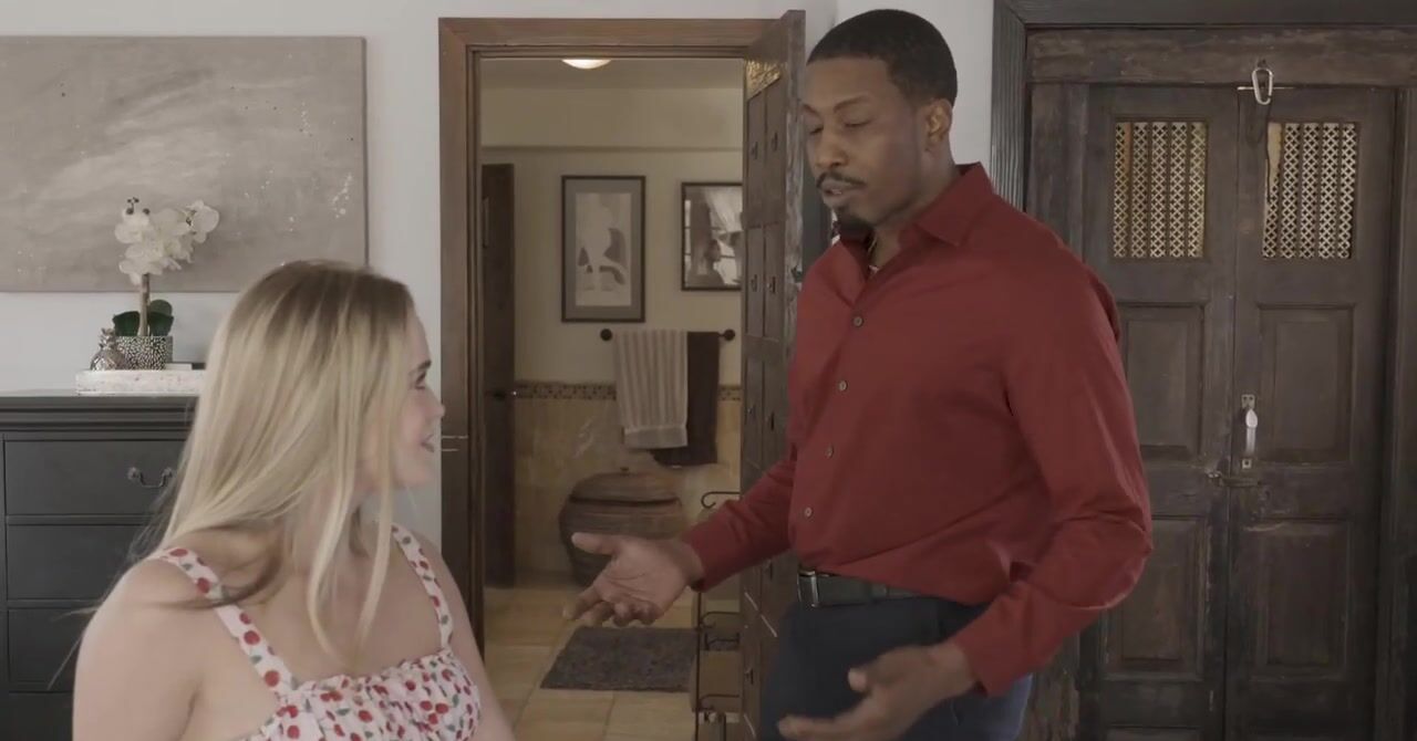 «Черный мужик не смог сдержаться и поимел белую подружку дочери, которая пришла к нему в гости когда никого не было дома. Белокурая красотка знала, что негр один и поэтому хотела с ним развлечься. Отец подружки давно возбуждал эту блондинку. Девка оказалась умелой развратницей с бритой и очень влажной киской. Её узенькая щелка прекрасно растянулась и хер туда вошел полностью, хотя и был довольно большим.»