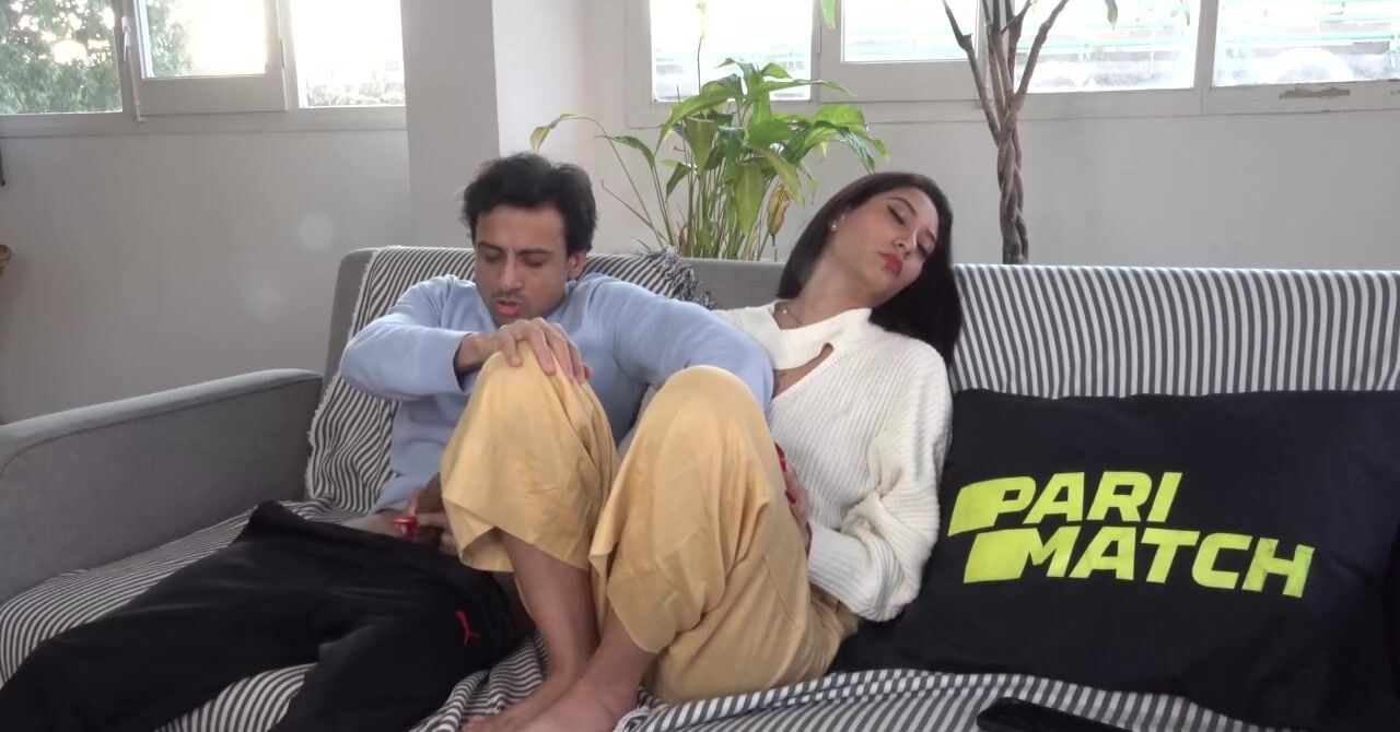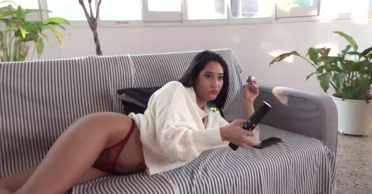 «Индийская красотка уснула, ну а парень стал к ней приставать, лаская упругое тело этой смуглой брюнетки. Вскоре он достал свой член и вложил его в руку девушки. Закончилось же всё тем, что цыпочка проснулась и согласилась трахнуться. Эта девка с модельной внешностью ещё никогда не имела дела с такими большим членами, поэтому она решает согласиться. В итоге парочка занялась очень страстным сексом на кровати.»