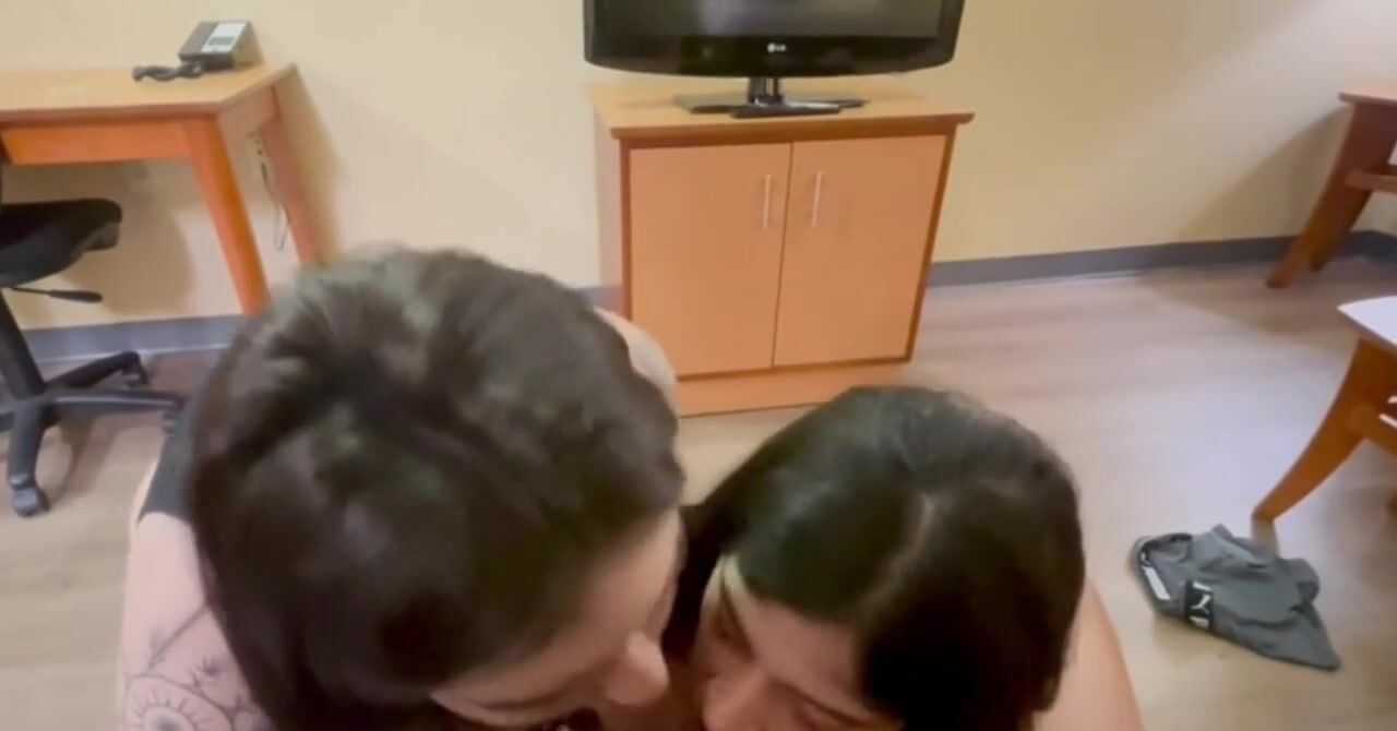 Неформалка и её миниатюрная подруга вместе сосут один член