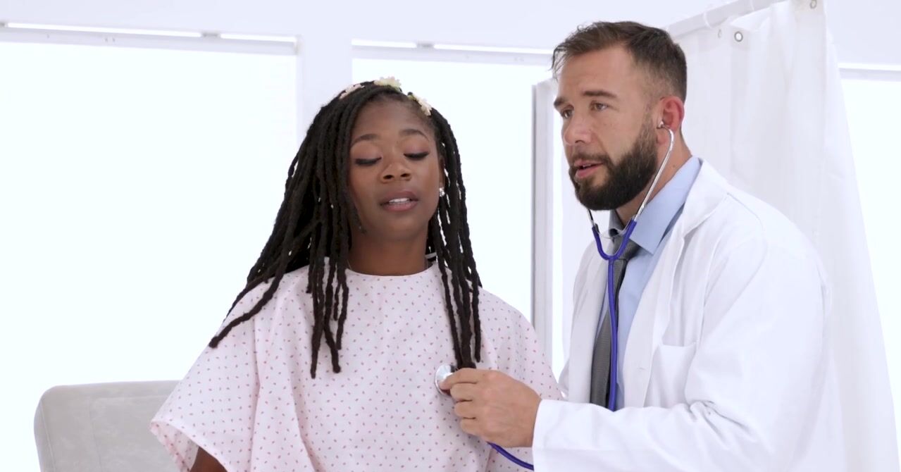 Описание: «Подружки очень волновались, идя на свой первый гинекологический осмотр. Но уже вскоре эти привлекательные девушки получили удовольствие, ведь диктора начали ласкать их влажные киски пальцами, а так же лизали щелки. Негритянка и белая телка возбудились не на шутку и потом отдались в пизденки, получая удовольствие. Врачи их очень жарко поимели в разных позах, а сперму спустили на красивые лица проказниц.»