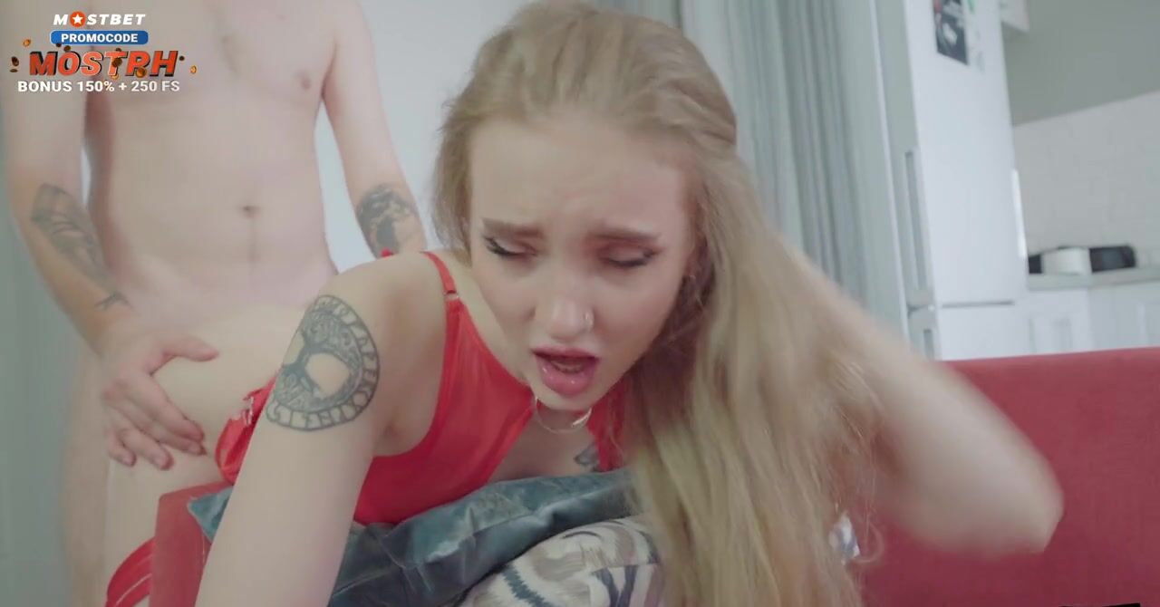 «Молодая мачеха изначально хотела заняться сексом со своим мужем и уже надела сексуальное бельё красного цвета. Но тут эта девушка застала пасынка за мастурбацией. Он взял её трусики и активно теребил свой толстый член. А его хуй намного больше, чем у отца, поэтому жаркая блондинка меняет свои планы. Теперь она принимается делать пасынку жаркий минет и отдается ему в бритую киску, умоляя наполнить её спермой.»