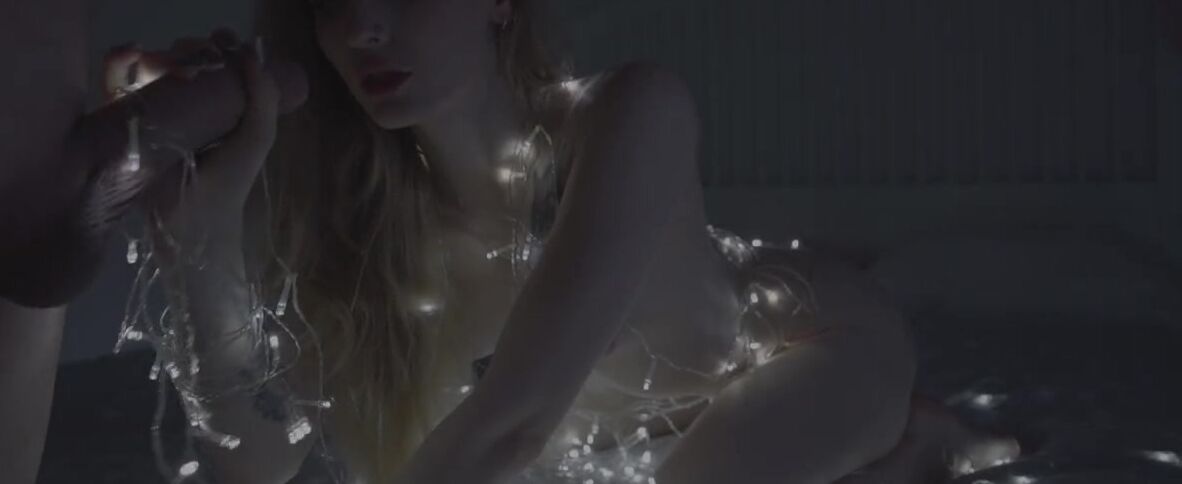 «Белокурая худышка наряжает гирляндой своё тело, а не елку. Так даже лучше, худенькая блондинка выглядит нереально соблазнительно и очень возбуждает приятель, который предлагает ей заняться сексом, доставая свой толстый член. Крошка с удовольствием принимается его сосать, а потом отдается в бритую киску, получая удовольствие. Эта девчонка наслаждается вагинальным сексом, а сперму она предпочитает принимать на лицо.»
