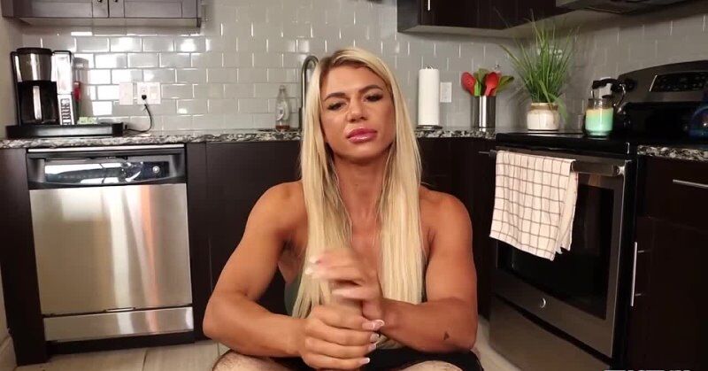 «Подкачанной красотке невозможно отказать и если она приказывает достать член, то парень обязан повиноваться. Чувак так и делает, после чего белокурая спортсменка с силиконовыми сиськами уже принимается надрачивать его болт. Эта бестия умеет доставить удовольствие, она сама же наслаждается мастурбацией и возбуждается. Только вот несмотря на возбуждение до секса дело так и не доходит, она только дрочит хер.»