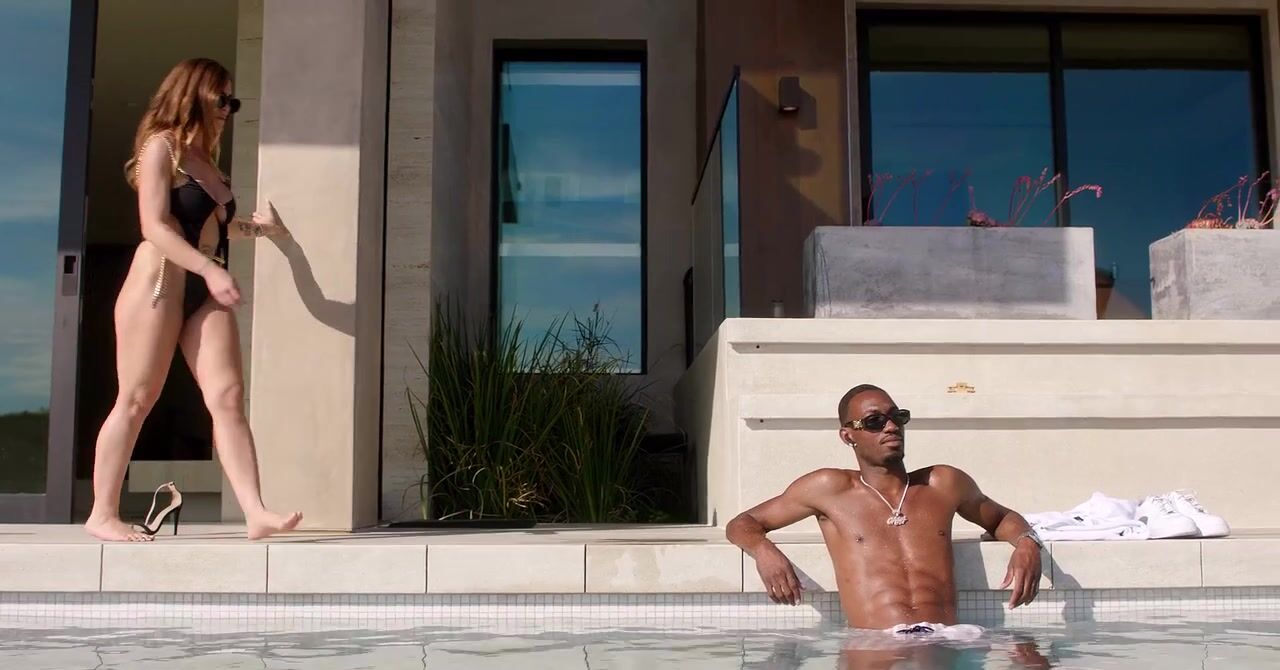 «Жаркая милфа надела сексуальный купальник, в котором её тело выглядело ещё более соблазнительно. Уже вскоре эта белокурая развратница наслаждалась большим черным членом, она без труда соблазнила молодого негра. Блондинка сделала ему жаркий минет и отдалась в мокрую киску. Но в какой-то момент вагинальной ебли ей стало мало, так что сучка попросила черного любовника засадить огромный хуй ей и в попку.»