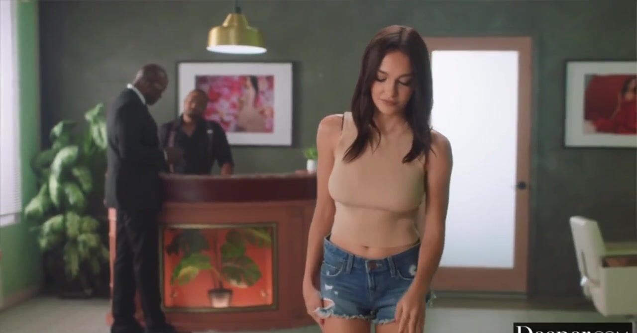 «Богатый негр оплатил красотке процедуру и теперь она его возбуждает ещё сильнее, так что он даже заплатил денег, чтобы все покинули парикмахерскую. Чернокожий чувак чувствует, что возбужден до придела, его большой хер сейчас буквально разорвет штаны, так что пусть брюнетка отсосет хер как следует. Худышка не против, ей нравится такая идея — межрасовая ебля в общественном месте. Девка с кайфом там резвится и отдается в мокрую щелку.»